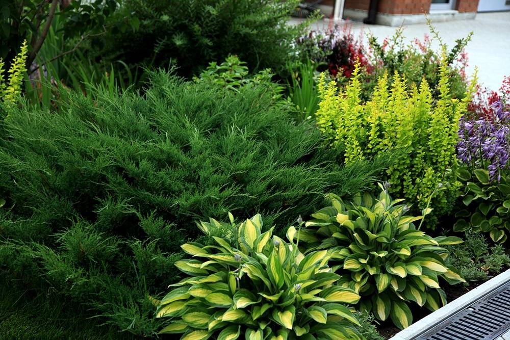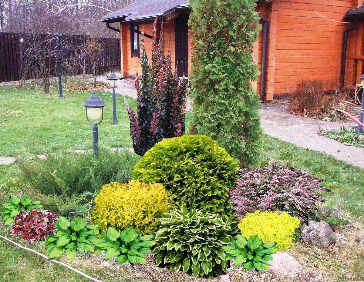 Вечнозеленые хвойники создают контрастный фон для любых цветов, но лучшим выбором станут неприхотливые растения, которым, как и хвойникам не требуется сложный уход: