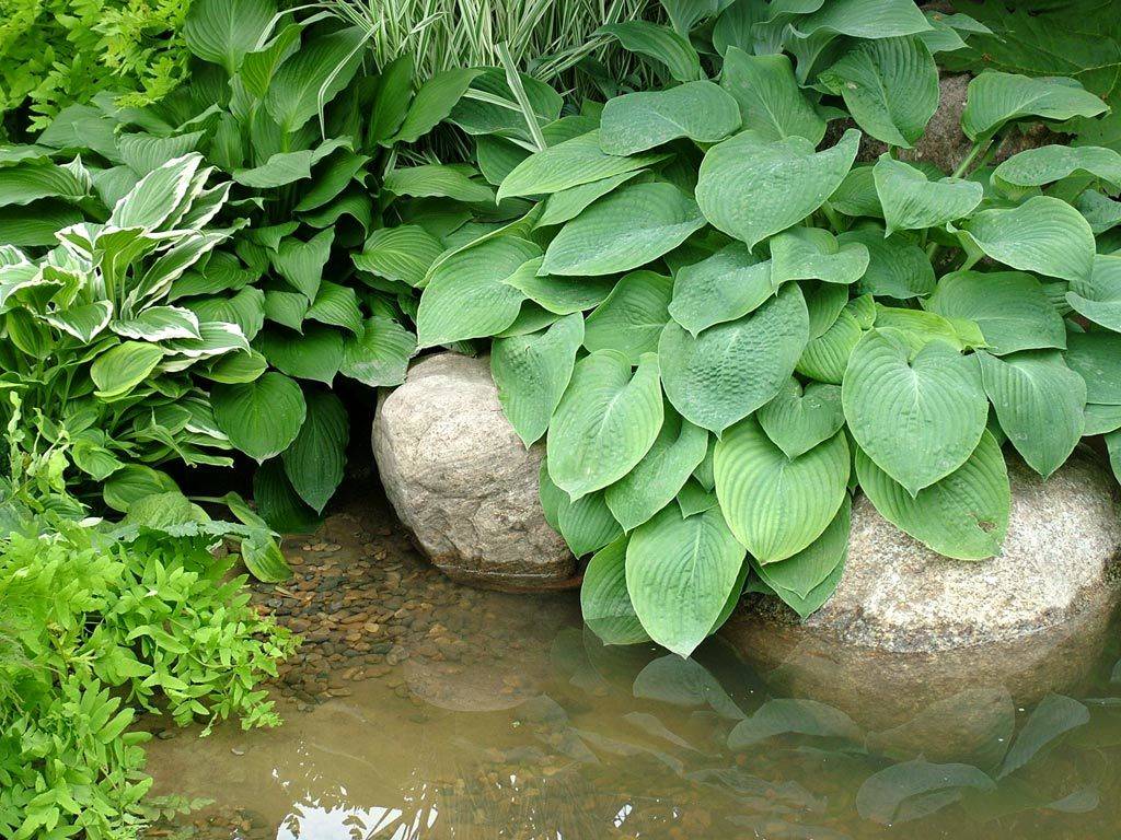 Если на участке расположен небольшой прудик, то рядом с ним советуют сажать хосту высотой 35-45 см, при такой высоте она смотрится более выигрышно на фоне воды.