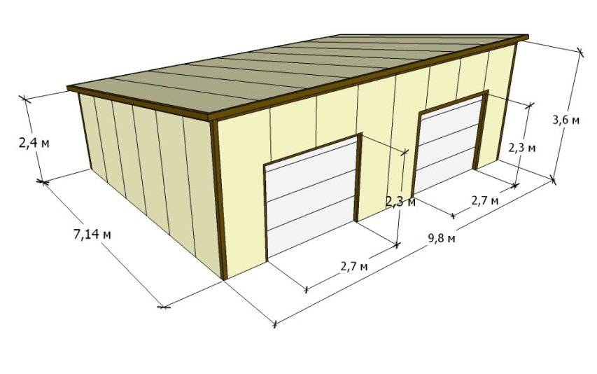 Если вывести минимальные габариты для гаража с двумя машинами, то размеры будут следующими: