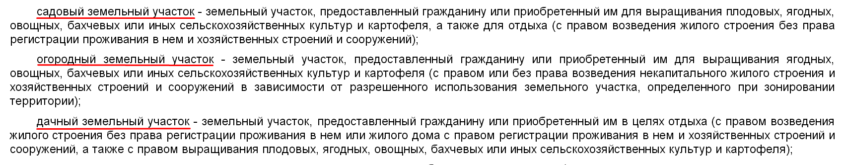 По своей сути садовый, огородный и дачный участки действительно разные. Чтобы в этом убедиться, обратимся к положениям, изложенным в статье 1 федерального закона от 15.04.1998 №66-ФЗ «О садоводческих, огороднических и дачных некоммерческих объединениях граждан» (далее ФЗ № 66):