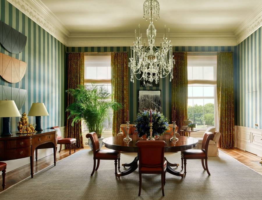 Обстановка украшается с помощью антикварных предметов, античных ваз, скульптур и традиционных изделий из мрамора, фарфора и бронзы.