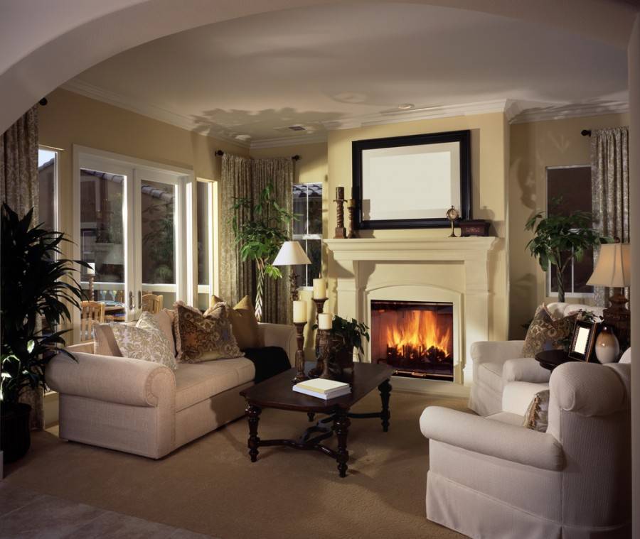 Для достижения наиболее гостеприимной обстановки при выборе обивки для мебели лучше остановиться на тканях, отдающих тепло (кожа, велюр, замша, флок). Если вы решите украсить стены картинами, уместнее всего будет вешать их на уровне глаз. Это самое комфортное для просмотра расположение.