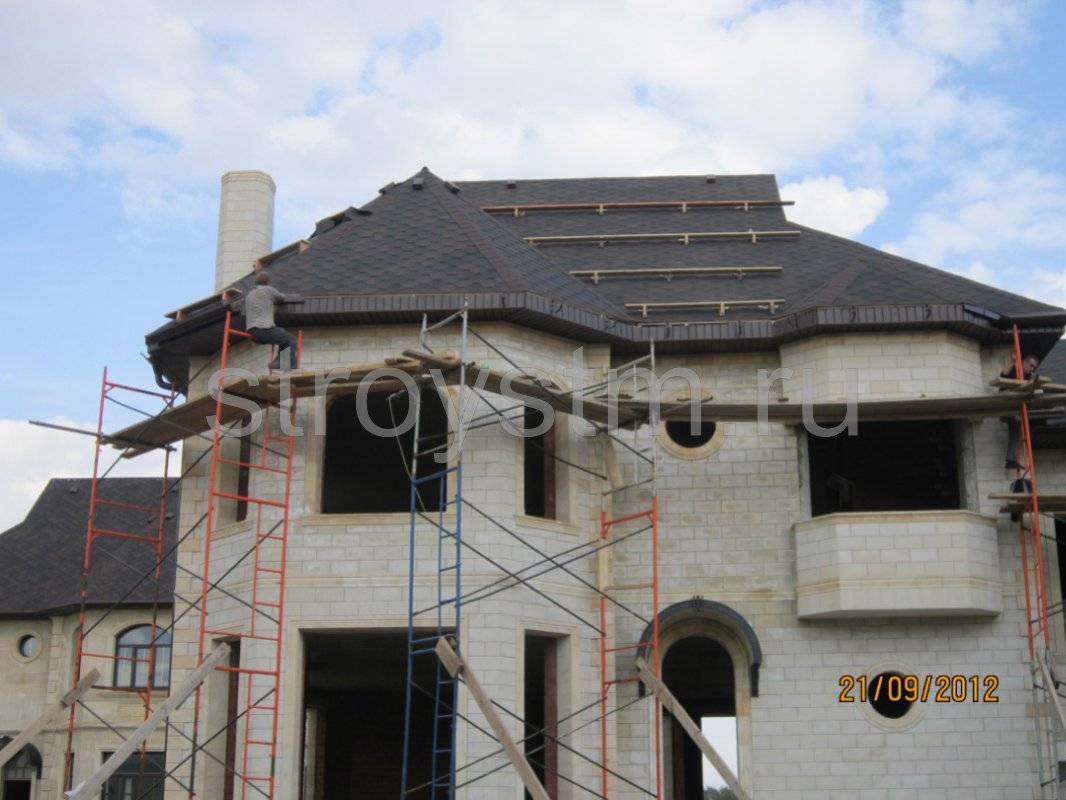 Подготовка основания | Для мягкой черепицы требуется сплошное основание, оно может быть из водостойкой фанеры, плит ОСП или обрезных досок. В каждом случае выбирается индивидуальный вариант с учетом сложности кровельной системы, категории здания и финансовых возможностей застройщиков. Нужно знать, что в некоторых случаях стоимость подготовки основания и цена используемых для этого материалов может превышать затраты на мягкую черепицу. |