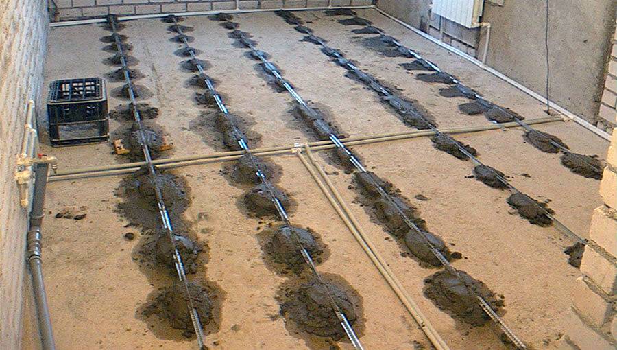 Перед началом монтажа маяков для бетонной стяжки, выполняют раскладку гидроизоляции и при необходимости теплоизоляции.