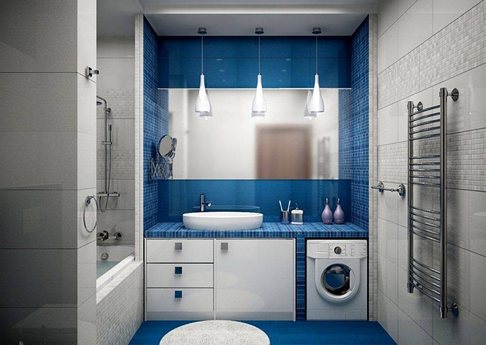 - Больше свободного места, где можно установить стиральную машину, ящик для белья или тумбу. Если место позволяет, то можно установить биде. Ориентируясь на увеличившееся пространство, дизайн можно создавать более смелый, используя различную цветовую гамму.
