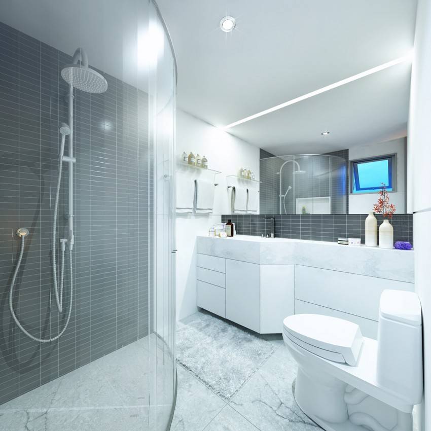 - используйте много белого цвета в отделке стен, потолка, мебели, сантехнике;