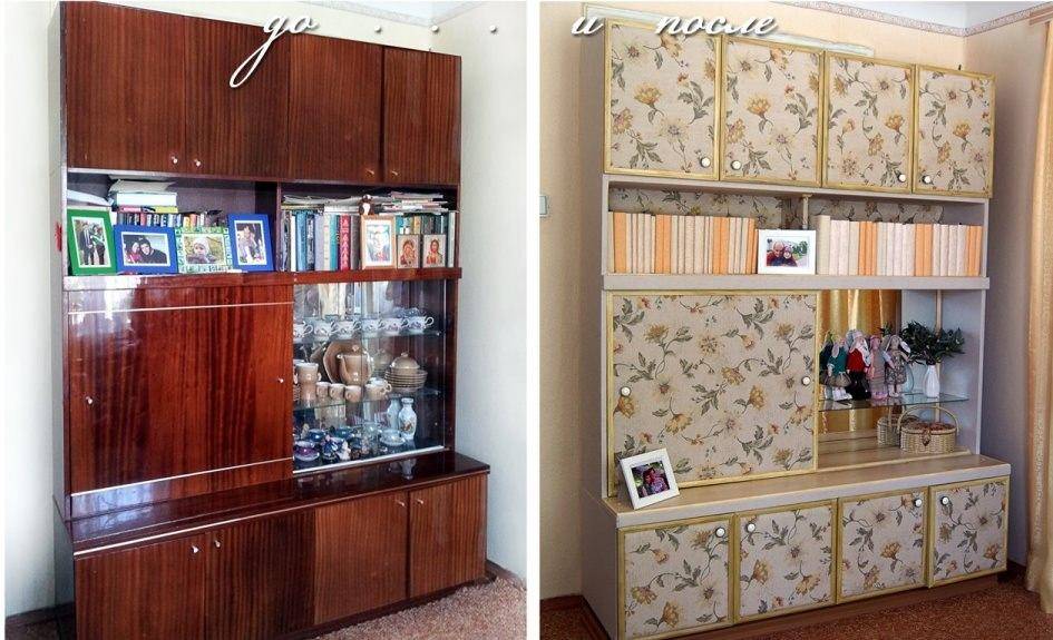Больше всего в старой мебели раздражают плохо закрывающиеся дверцы. Если вы собрались взяться за такое дело, как переделка советской мебели своими руками, то сначала вам придется купить новую фурнитуру, найти материал для заделки расшатанных отверстий (можно использовать шпатлевку, дюбеля или пробки), обзавестись отверткой и шуруповертом, а потом изрядно потрудиться над починкой дверей.
