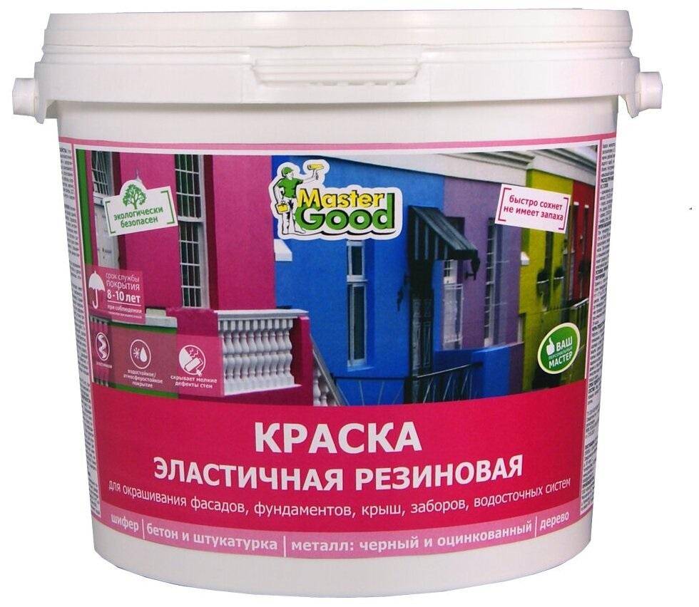 «MasterGood » производят в нашей стране. Упругая и гибкая, краска при окрашивании формирует слой, маскирующий неровную поверхность и небольшие трещины. Хорошо подходит для влажных помещений, ванных комнат.