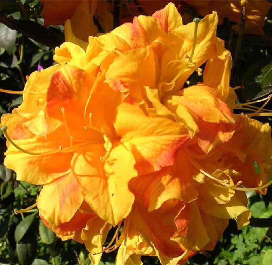 - Рододендрон листопадный желтый — отец основной части гибридных сортов. Небольшие цветочки собраны в пучки по 7-12 шт. Поражают яркостью сочно-желтого цвета. Один из самых неприхотливых сортов.