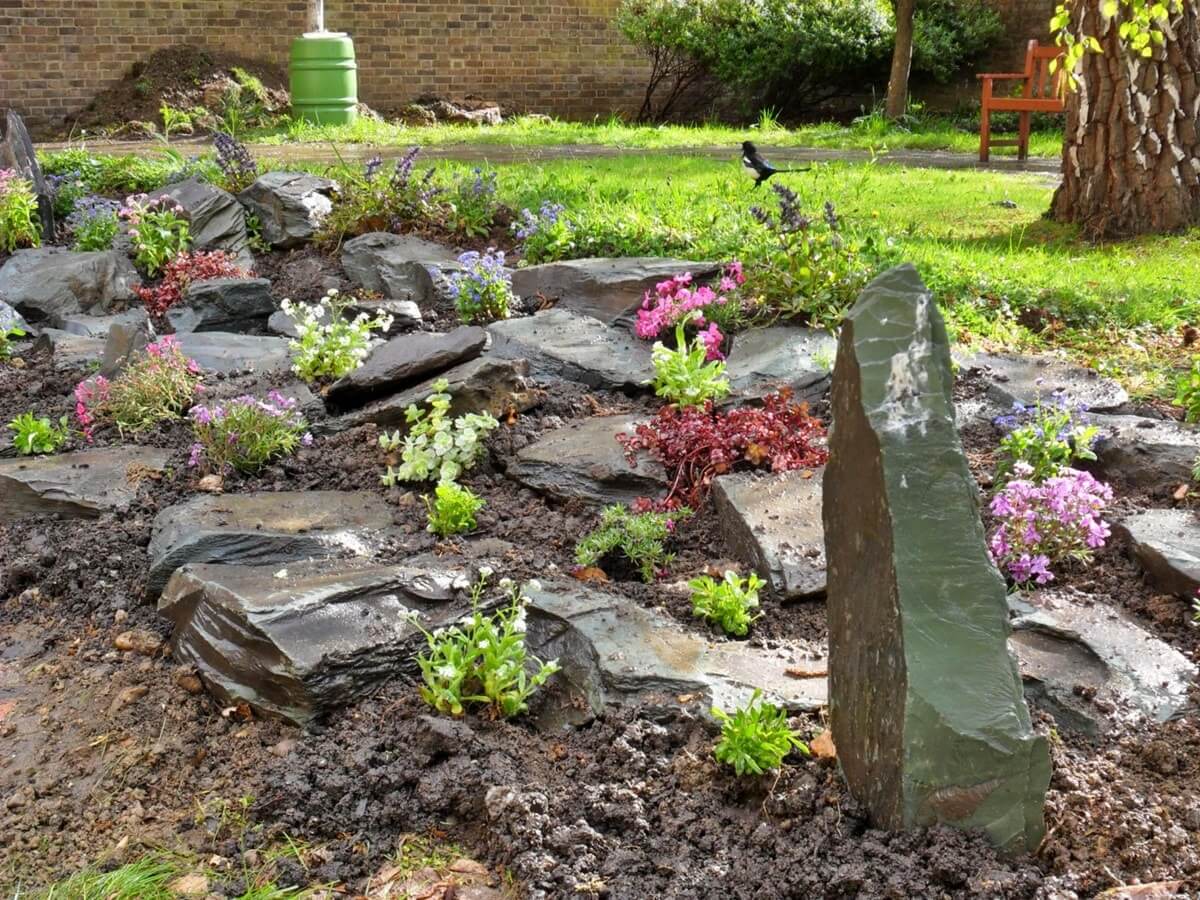 - Ландшафтный представляет собой цветник, обустраиваемый с учетом общего оформления территории. Здесь каменная композиция является частью единого ландшафтного пространства и объединяет все элементы между собой.