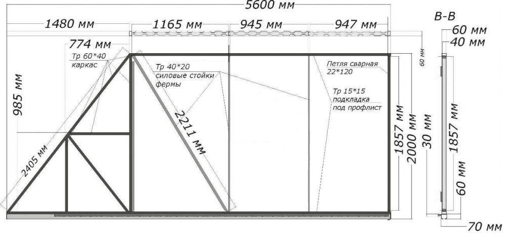 Конструкция и размеры полотна сдвижных ворот с каркасом под металлопрофиль