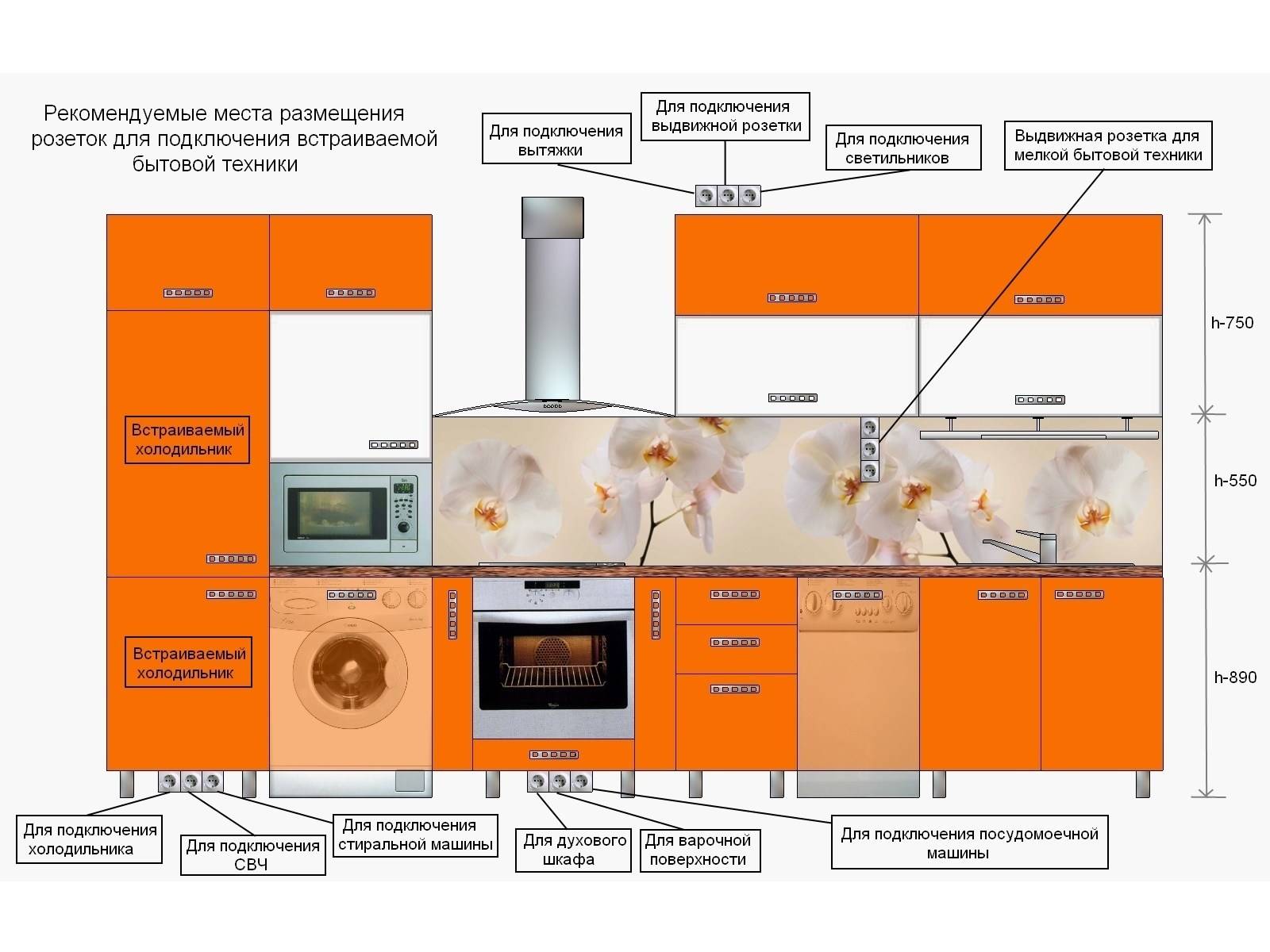 При расчете линий питания важно обеспечить двукратный запас для всех кухонных приборов. Не забудьте рассчитать параметры их мощности заранее и сделать необходимые выводы