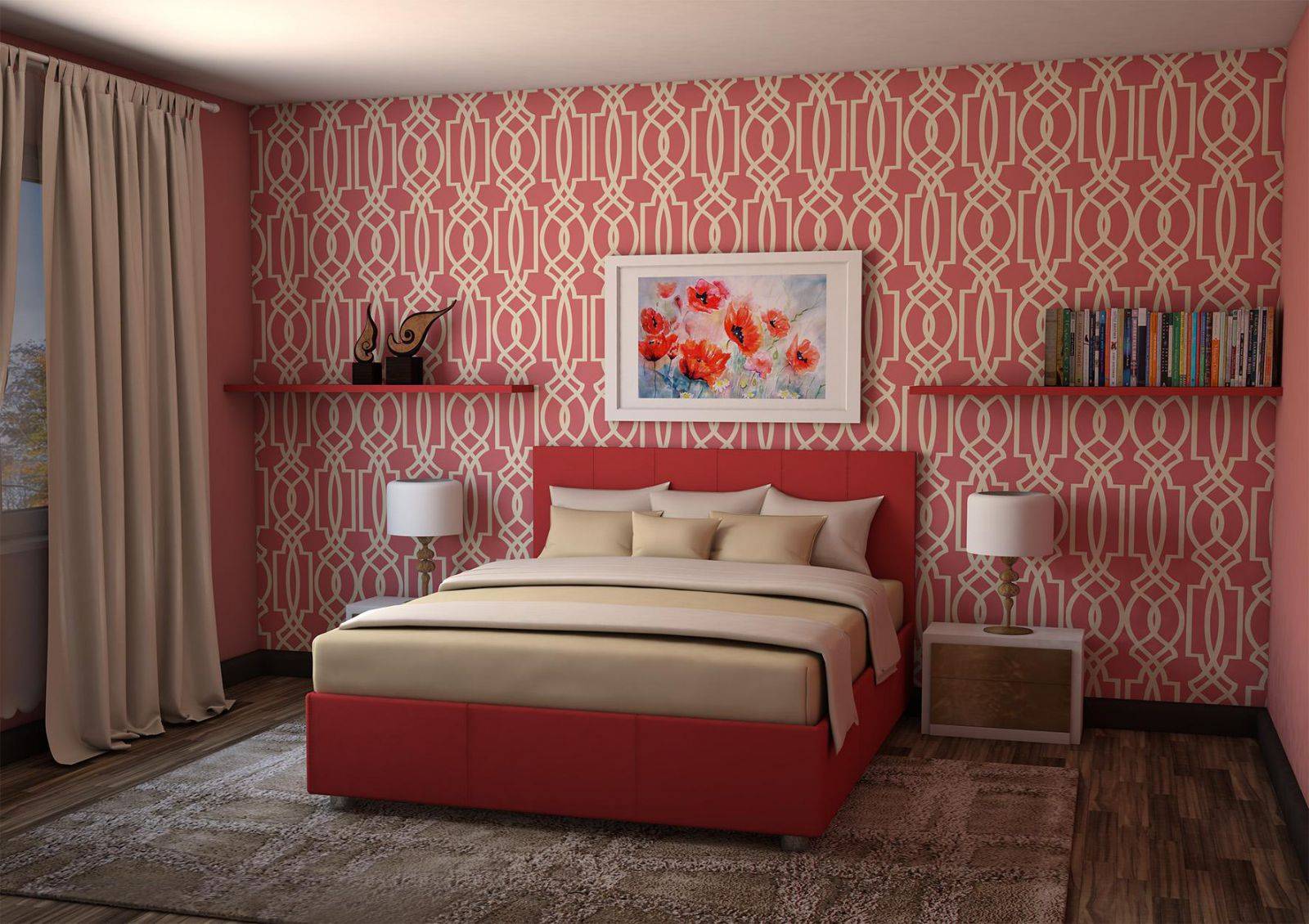 Для оформления стен в спальне чаще всего используют обои. В данном случае обычно делают одну стену красной, а остальные — в более нейтральных тонах. Но использовать красные обои на всех стенах возможно, если соблюдать некоторые рекомендации дизайнеров: