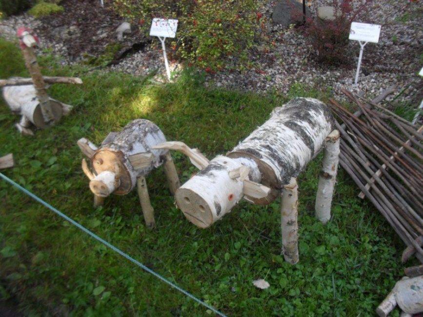 Садовые фигурки из дерева — это необязательно резьба. Могут быть и такие — из чурбаков. Замечательный конь!