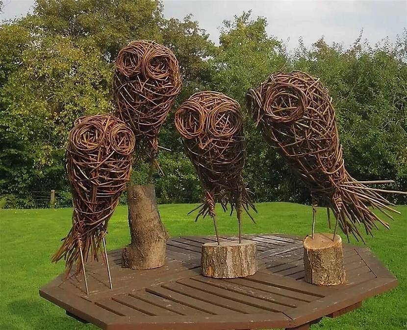 Занимательно смотрятся целые наборы изделий с общей тематикой. Они помогут создать повышенный уют при отдыхе на даче. Устанавливать их рекомендуется по всей территории. Интересно смотрятся похожие модели, расставленные неподалеку от дорожки и зоны отдыха (детской площадки, открытой беседки).