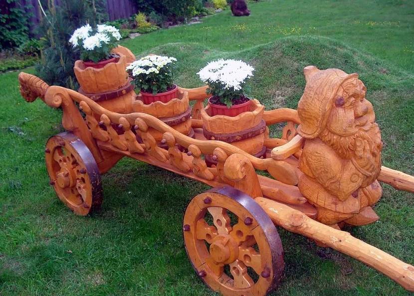 Одним из самых популярных вариантов материала для садовых фигур остается дерево. Издревле дерево почитается как источник жизни. Именно поэтому фигуры, выполненные из представленного материала, так привлекательны для людей. В них как будто сохраняется живое тепло, поэтому даже кикиморы и лесовики не кажутся нам страшными. Садовые фигурки из дерева могут быть любыми: пианист с роялем, лесные духи, избушка на курьих ножках – ваша фантазия ничем не ограничена.