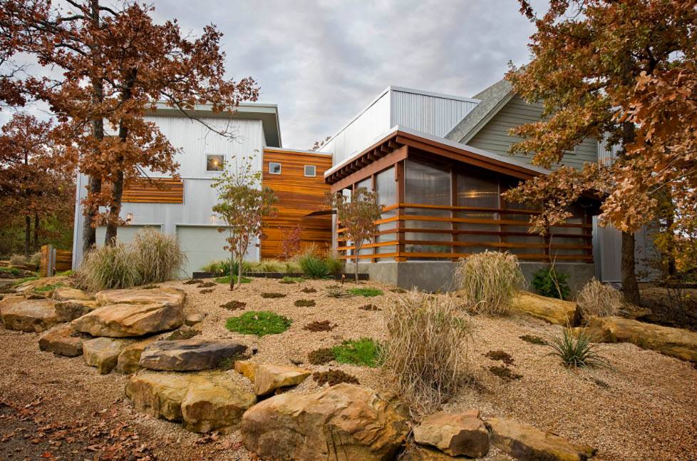 Серый у большинства людей ассоциируется с грустью, поэтому даже при красивом оформлении дом будет способствовать снижению настроения. Во время выбора такого цвета нужно учитывать, что строение должно выделяться на фоне остальных построек на участке.