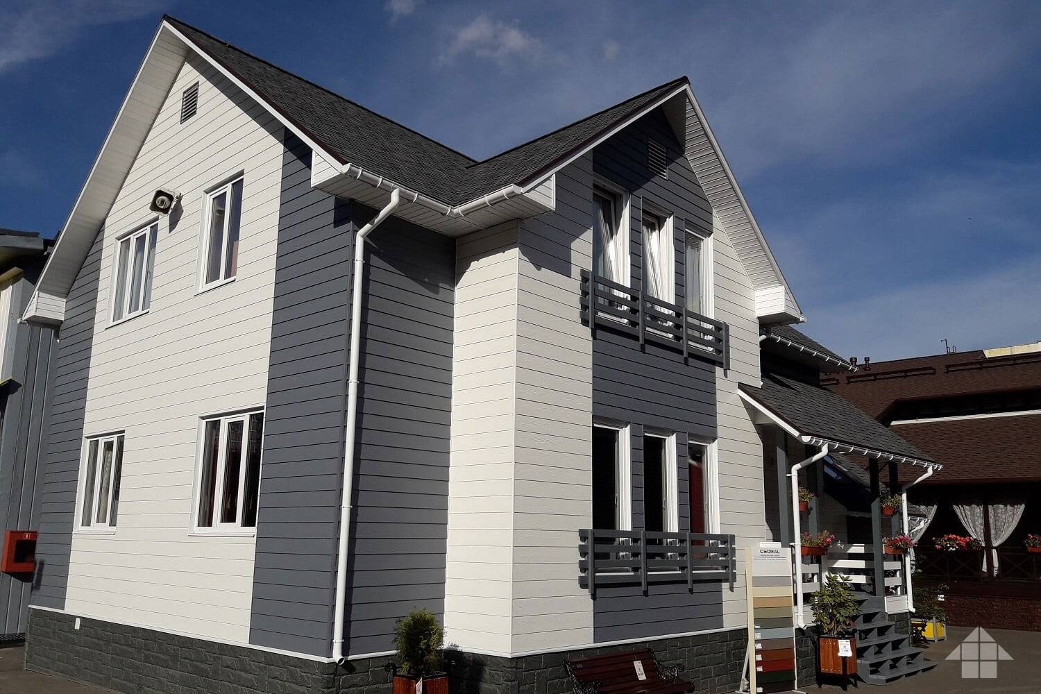 Инновационный отделочный материал «Cedral» является доступной альтернативой дорогостоящей доске из древесины кедра (откуда и название). Внешне от нее почти не отличимый, он придает фасаду дома приятный эстетический вид. Кроме того, фиброцементный сайдинг «Кедрал» обладает отличными гидрофобными, огнеупорными и теплоизоляционными свойствами, которые так необходимы в условиях сурового российского климата.