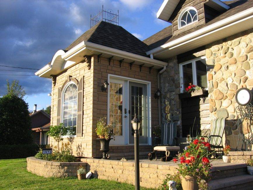Стеновые фасадные панели под камень определяют стиль и привлекательность всего строения. Для выделения необходимых частей частного дома можно воспользоваться цветовым зонированием пространства. Другим цветом могут быть выделены углы, откосы окон и дверей, фундамент в различных вариациях.