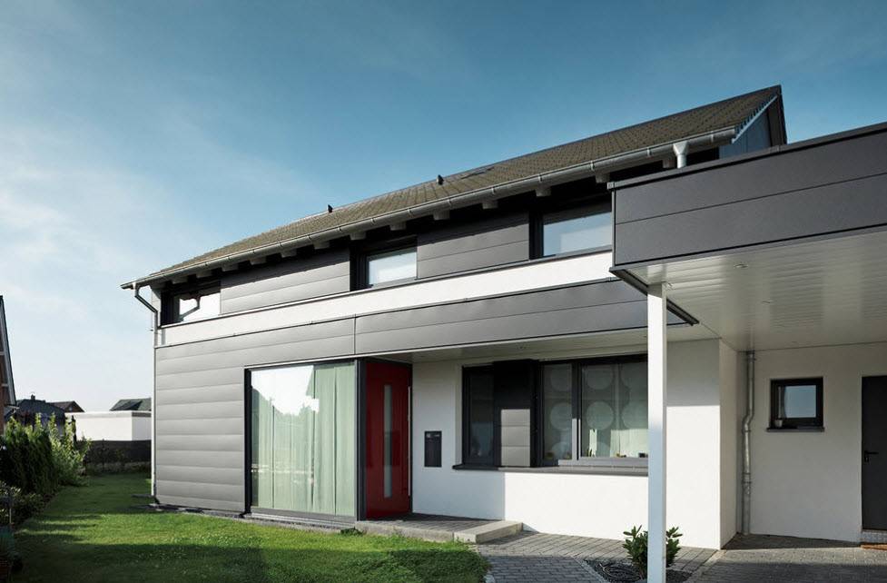 В этом случае домовладелец может провести отделку фасада частного дома качественным и долговечным материалом, за которым легко ухаживать. Конечно, цена у таких панелей немаленькая, но она полностью оправдана, ведь материал устойчив к образованию коррозии, имеет привлекательный внешний вид. Что касается недостатков, то стоит отметить то, что сталь накапливает статическое электричество и требует монтажа теплоизоляционного материала.