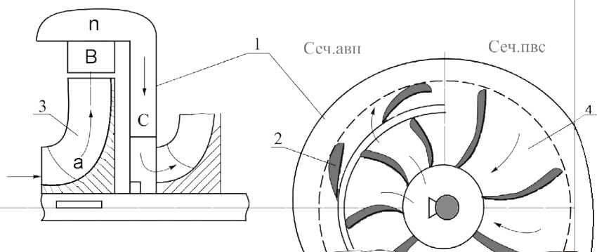 Схема движения воды в центробежном насосе