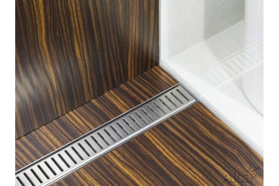 Так как в этом случае нет поддона, слив воды выполняется под решетку трапа, а затем по трубам она уходит в канализацию. Поэтому советуется приобретать для ванной плитку с пониженным уровнем скольжения.
