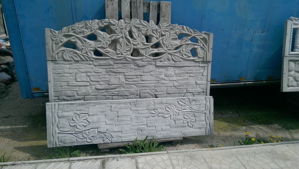 Элементы заборов производят методом вибролитья на специальном оборудовании, используя армирование стальными прутьями. Так достигается высокая прочность бетона. Фибра и пластификаторы улучшают его эксплуатационные качества.