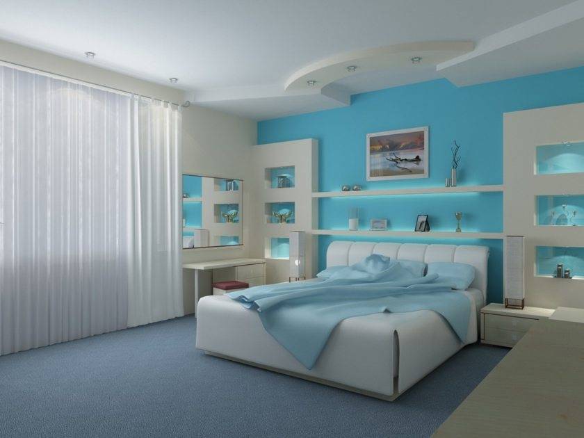 Голубые обои в спальне