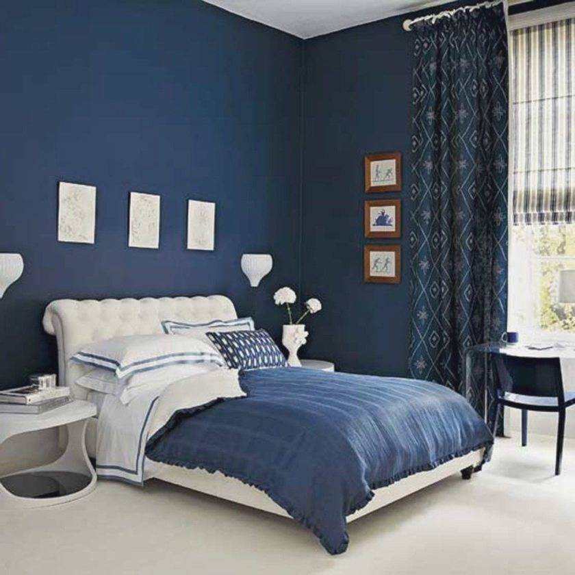 - Насыщенный синий. Такой оттенок – идеальное решение для оформления в контрастном варианте. Подходит для больших, хорошо освещаемых спален, где светлые обои будут выглядеть менее привлекательно.