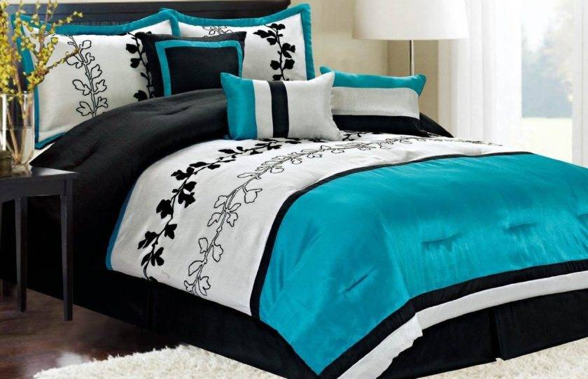 Выбирая синее постельное белье, плед, покрывало, подушки, важно следить за тем, чтобы их оттенок гармонировал с окружающей обстановкой.. Идеальным вариантом для спальни в синих тонах станет белоснежная постель