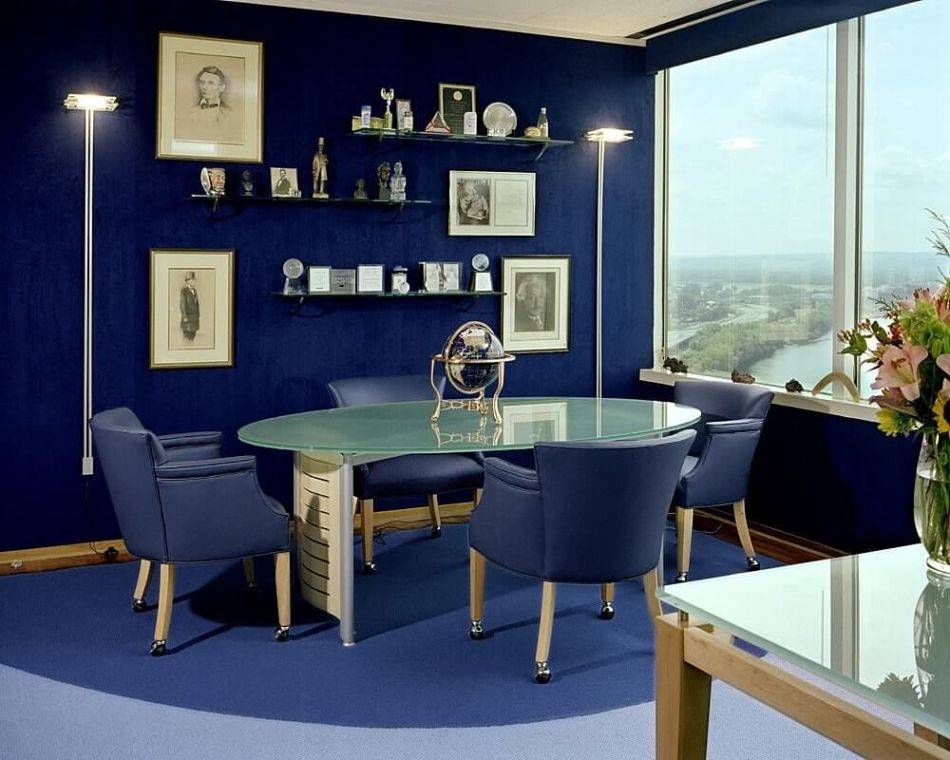Личный кабинет. Для личного кабинета отлично подойдут темные оттенки синего цвета. Такой оттенок поможет настроиться на работу. Специалисты рекомендуют для таких помещений выбирать массивную мебель, желательно из темного дерева.