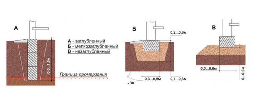 Определяя тип будущего фундамента, и принимая решение о заглублении опорной конструкции, учтите условия, в которых будет эксплуатироваться здание.