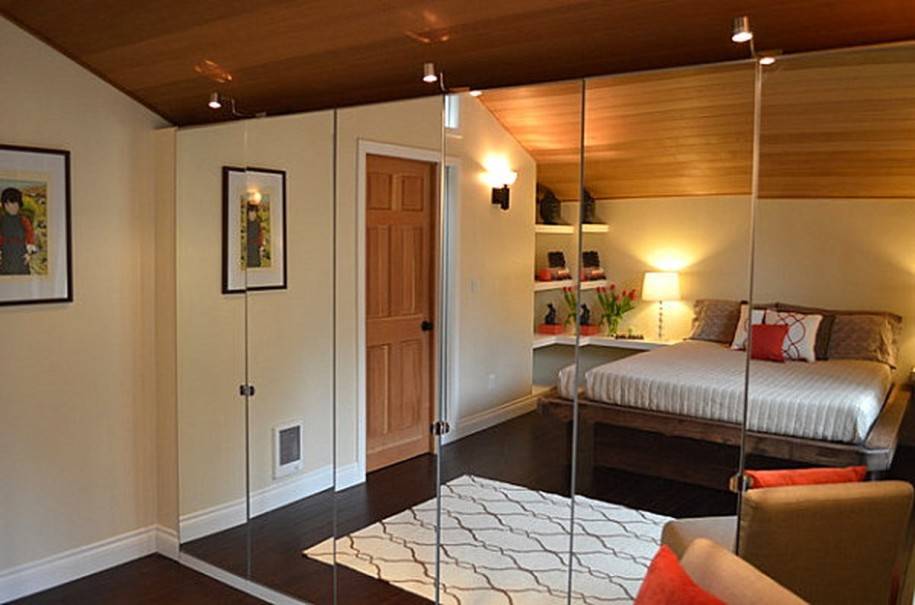 Зеркал не должно быть слишком много. Если в комнате уже имеется большое зеркало (например, от пола до потолка), вполне возможно, что зеркальная дверь окажется «лишней». Когда в помещении слишком много стеклянных поверхностей, отражающих свет, из комнаты исчезает домашний уют. Такое помещение больше напоминает танцевальный класс, в котором занимаются балерины или гимнасты, или бальную залу.