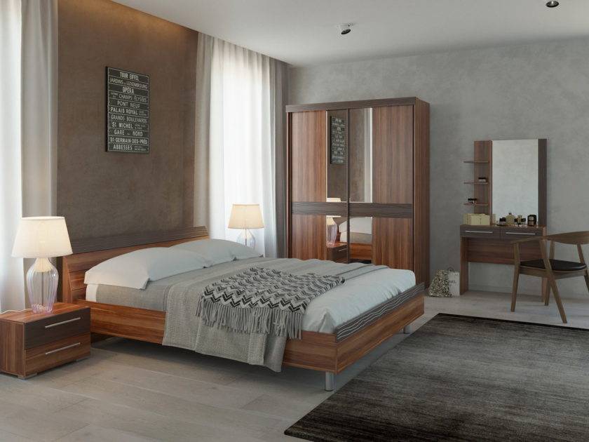 - для маленькой спальни – кровать можно поставить почти впритык к раздвижным дверцам шкафа.