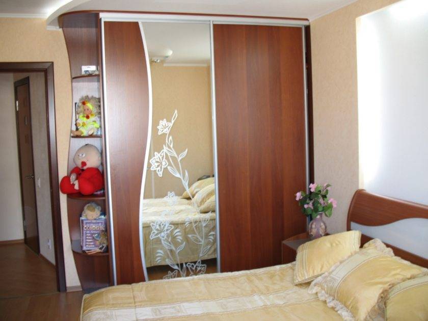 Монтировать шкаф-купе необходимо вдоль короткой стены, благодаря этому помещение станет идеальной формы, и находиться в нем будет комфортнее. При таком расположении шкаф-купе будет практически незаметен, а элементы декора на фасаде хорошо украсят интерьер. Чтобы не сделать из комнаты узкий коридор, нельзя ставить сплошной шкаф вдоль длинной стены. В таком случае пространство уменьшится и станет неуютным.