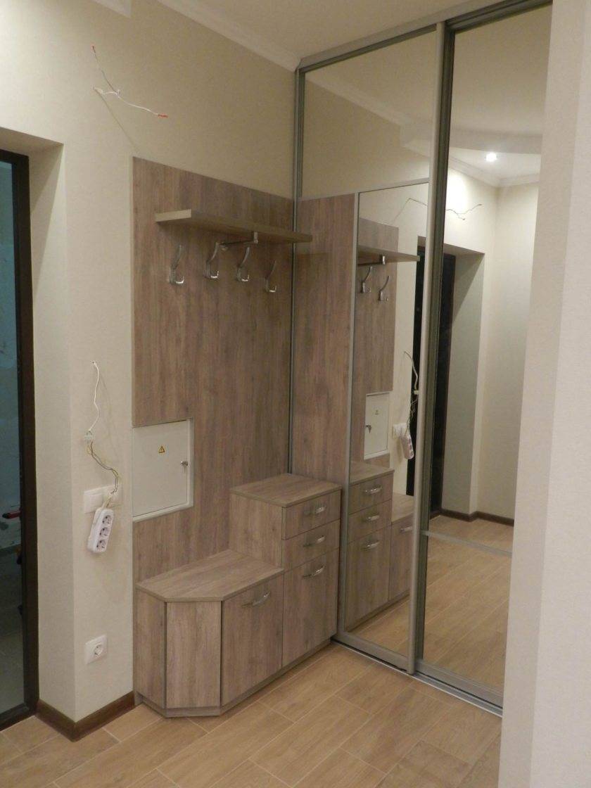 Если помещение узкое и длинное, то несомненно удачным дополнением станет встроенный длинный зеркальный шкаф-купе. В нем поместится все необходимо при минимально занимаемой площади.