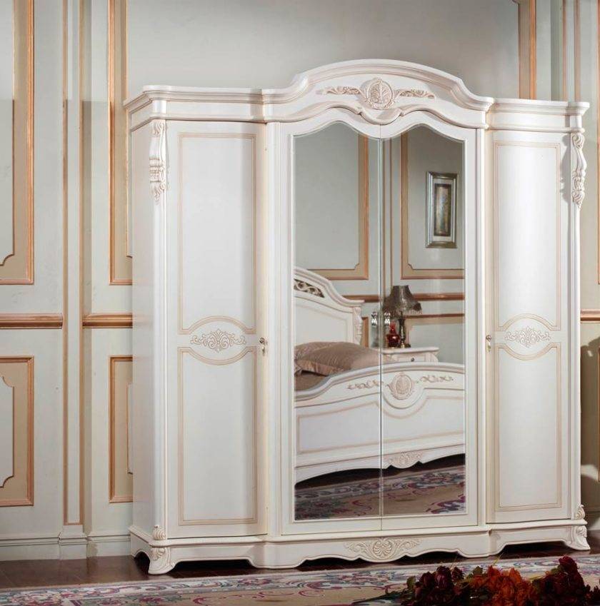 - Для классики подходят элегантные модели со сдержанной роскошью. Этому стилю присущи строгость линий, потому радиусные формы шкафов исключаются. Предпочтительнее выбирать изделия из натуральной древесины. Цветовая гамма выдерживается в умеренных тонах бежевого, черного или белого цвета. Допустима отделка под золото или серебро;