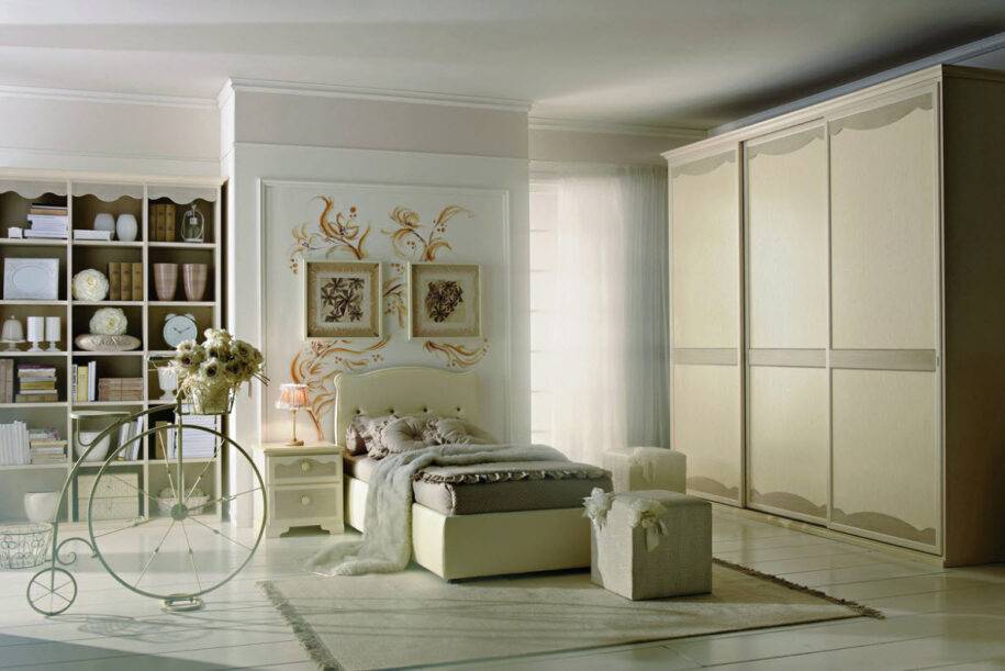 Для детской в стиле прованс, предпочитают изящные конструкции с патиной в нежных цветах, обладающие ненавязчивым декором и простыми линиями, для классики характерны шкафы, имеющие изящные линии, изысканное оформление и натуральную фактуру или деревянные шкафы-пеналы, комбинированные со стеклом. За счет симметричных форм, подобные изделия, всегда выглядят очень органично.