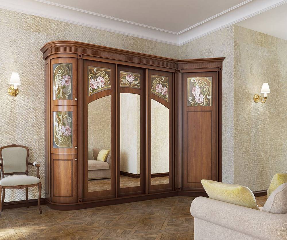 При выборе шкафов-купе в классическом стиле следует определиться, какая модель впишется в интерьер лучше всего. По форме они могут быть фигурными или прямоугольными. Что касается конструкции, то встречаются корпусные, угловые, встроенные, модульные и полувстроенные разновидности шкафов. Каждая модель имеет свои особенности.