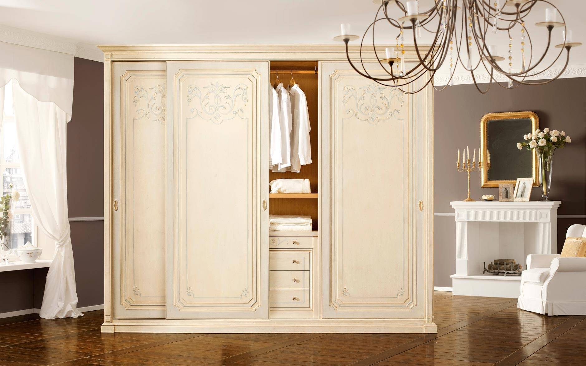 Не стоит думать, что для классического стиля больше подходят распашные варианты шкафов. Модели с раздвижными дверями вмещают много разных вещей, при этом не занимают лишнее пространство. Классическая мебель имеет ряд положительных характеристик, благодаря которым пользуется большой популярностью: