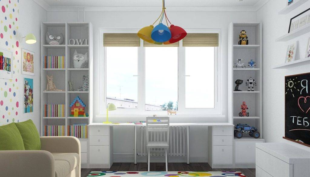 Обустроить детскую для одного ребёнка бывает сложно, а что уж говорить о комнате, в которой проживает 2-3 детей, особенно, если они разного возраста или пола. Оформляя комнату для ребят, лучше выбирать и располагать письменный стол во всю стену у окна. Существует несколько вариантов размещения рабочих мест для двух детей-школьников. При этом нужно помнить, что у каждого из детей должно быть достаточно свободного пространства для выполнения домашних заданий, работы на компьютере или занятий рукоделием.