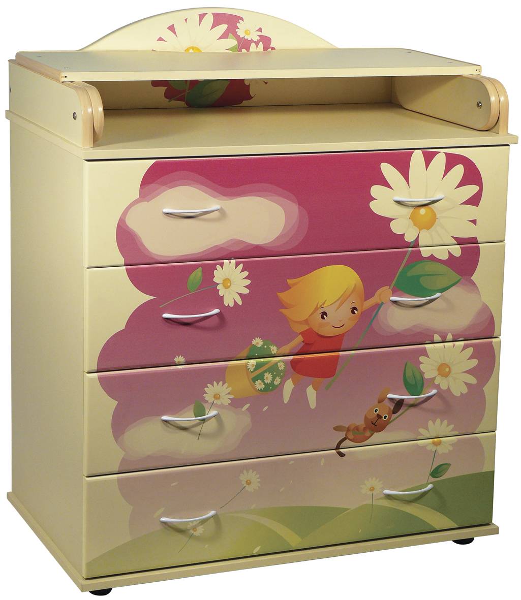 - Комод с пеленальным столиком Иришка Gandilyan. Материал – бук, ДСП. Размеры 84 х 44 см, высота 96 см. Чтобы удобнее было передвигать комод, на задних ножках у него закреплены колесики. Для хранения вещей имеется 4 глубоких ящика. Цена 10760 руб.
