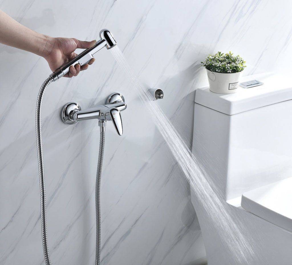 - в комплектации лейка с кнопочным приводом для биде, комплект для настенного крепления, шланг;