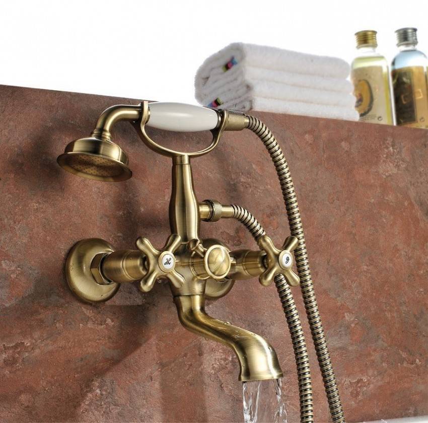 Особое внимание привлечет смеситель под бронзу, если в помещении имеются похожие элементы. Наиболее популярными видами смесителя для ванной являются встраиваемый, комбинированный и настенный