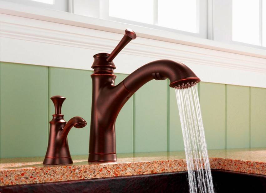 Для кухни в ретро стиле удачно впишутся смесители под старину с двумя рычагами. Эти вентили могут быть выполнены и под бронзу, и под золото. Такое сочетание подходит и для стиля барокко. В этом случае можно предусмотреть для рычагов декоративную подставку или кованые элементы. Для таких современных направлений в дизайне, как хай-тек, лофт, модерн и минимализм чёрный смеситель является необходимым атрибутом.