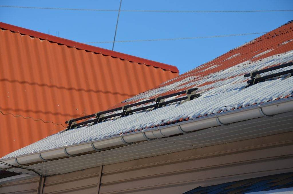 Этот материал для крыши, как и черепица, имеет чувствительность к перепаду температур. Днем снег подтаивает, а вечером замерзает образуя льдинки. Они во время движения царапают поверхность и приводят к образованию ржавчины. На такую крышу снегозадержатели делают из профлиста, решетки или труб. Процесс установки мало чем отличается от написанной выше инструкции для металлочерепицы. К обязательным правилам можно отнести следующую информацию: