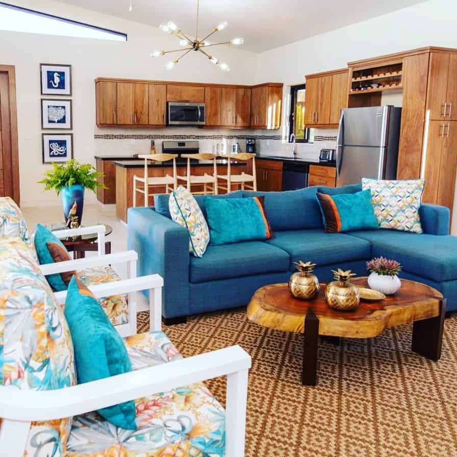 Однако лаконичная трендовая гостиная 2021 может быть выполнена в цвете морской волны.