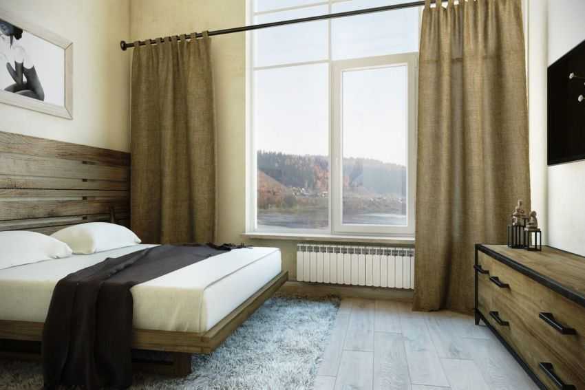 При декорировании лофтовой спальни есть два основных варианта: уйти в ретро или в современность. В первом случае будут хороши те самые классические бархатные портьеры с тяжелыми подхватами на железных кольцах и массивном деревянном карнизе. Но это решение требует пространства, как впрочем и сам стиль.
