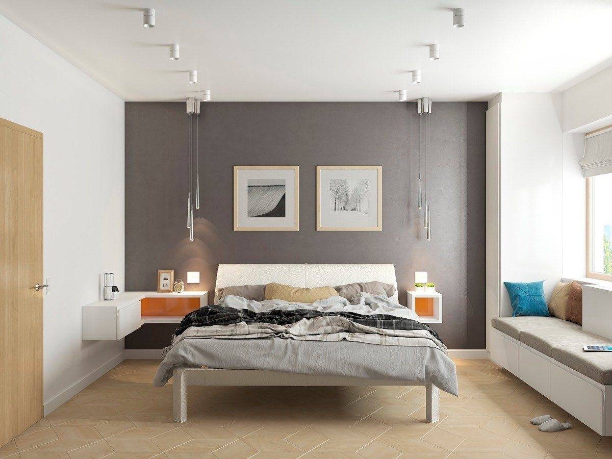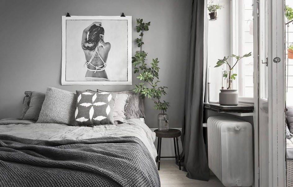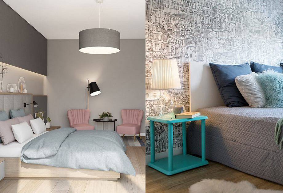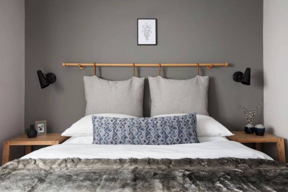 Спальня в серых цветах: яркие аксессуары, придающие характер