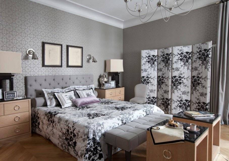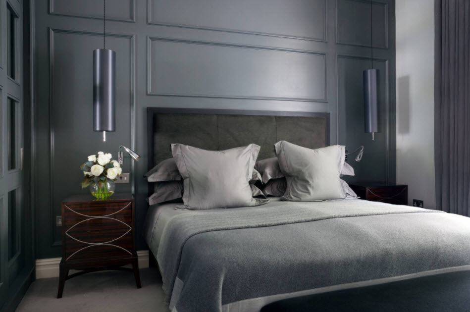 Для декора спальни стоит воспользоваться способностью цвета формировать идеальную гармонию с любым другим оттенком. Для обстановки этой комнаты рекомендуется для соседства с серым выбирать цвета с невыраженной насыщенностью. Наиболее подходящими будут самые светлые и блеклые оттенки, но при этом достаточно глубокие. Не менее эффектно сморятся монохромные варианты.